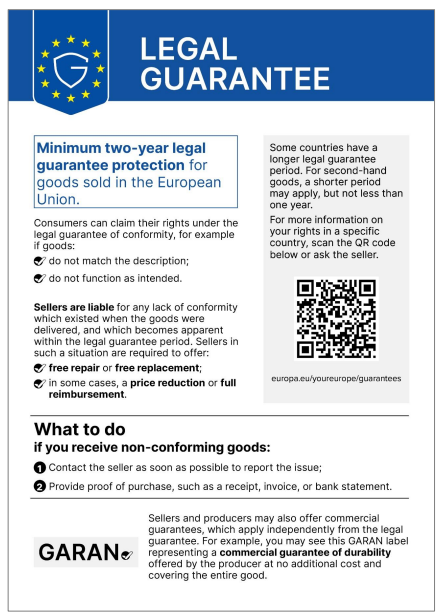 Label zur gesetzlichen Gewährleistung und zur Garantie